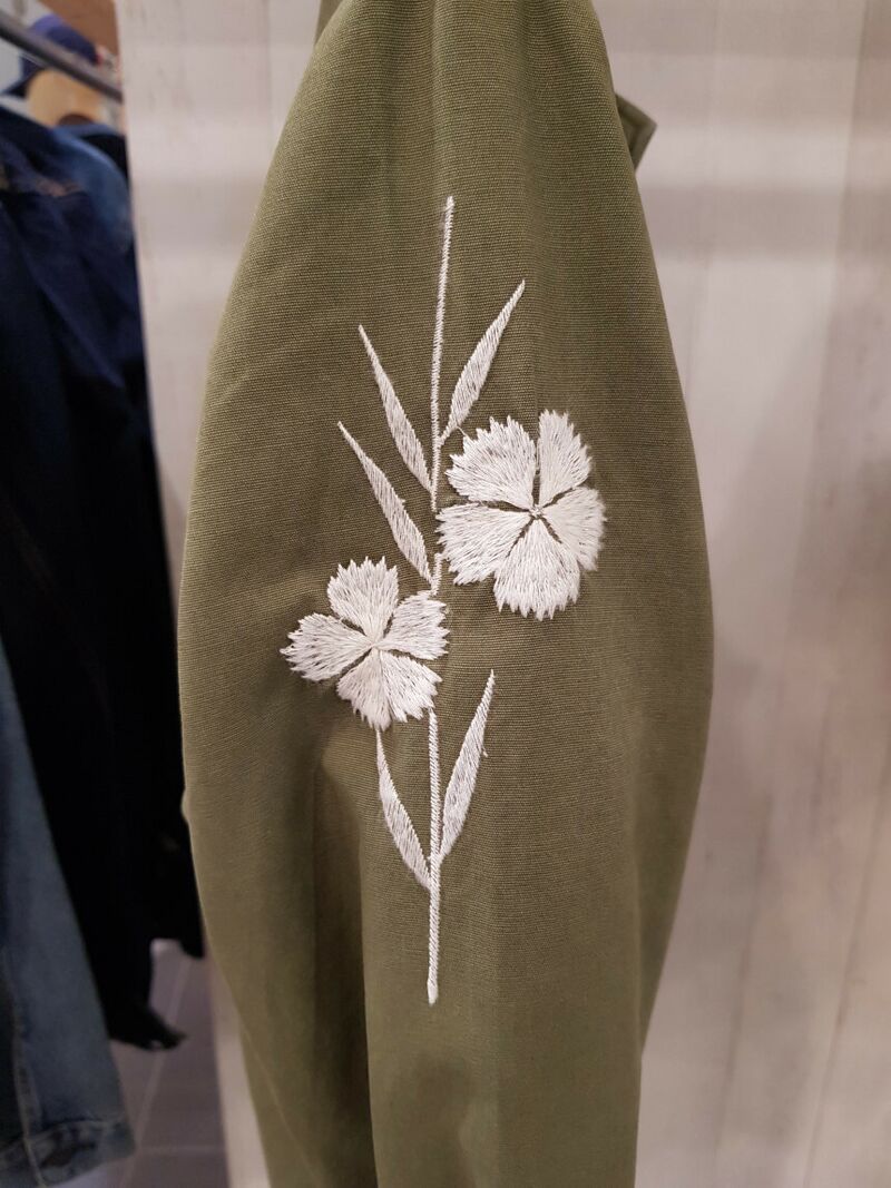 앞쪽 팔라인에는 꽃무늬 자수를 사용하여 투박할수있는