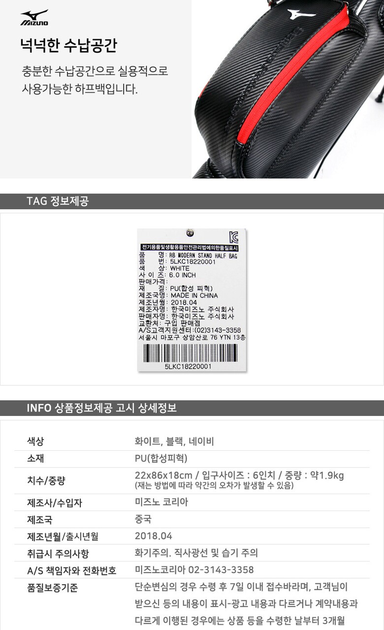 미즈노 RB 모던 스탠드 하프백 5LKC182200 골프백 골프가방 골프용품 MIZNO RB MODERN STAND HALF BAG