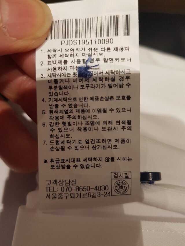 | 6. 세탁방법 및 취급시 주의사항 | 상품상세참조 |