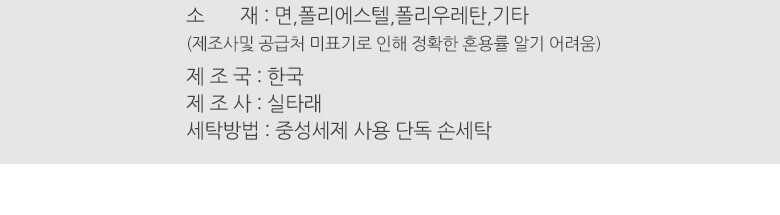 1. 제품 소재 (섬유의 조성 또는 혼용률을 백분율로 표시, 기능성인 경우 성적서 또는 허가서) 상세 페이지 참조