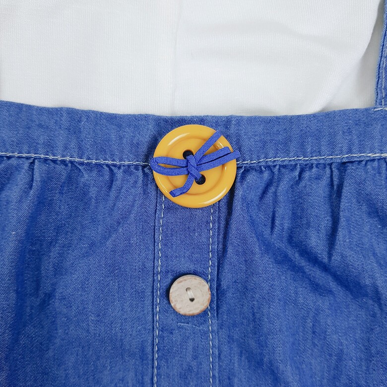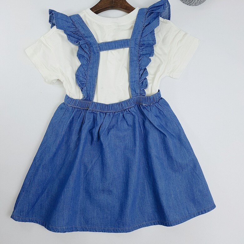 무료배송 여아 왕단추 멜빵 플레어 스커트&언발 셔링셔츠 세트