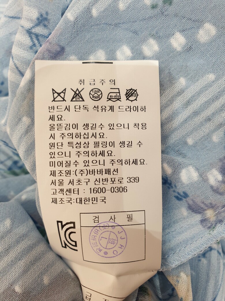 | 7. 세탁방법 및 취급시 주의사항 | 상세페이지 참조 |