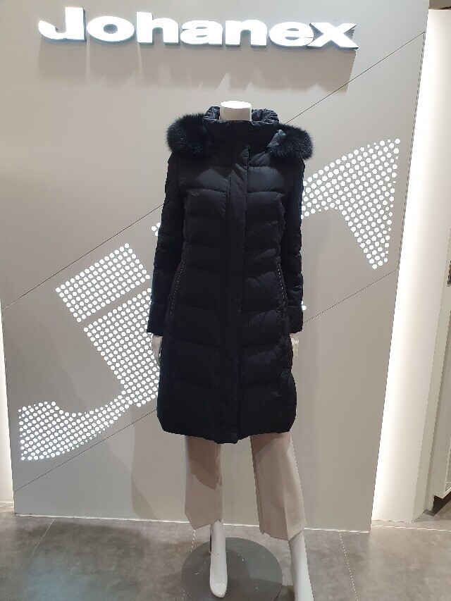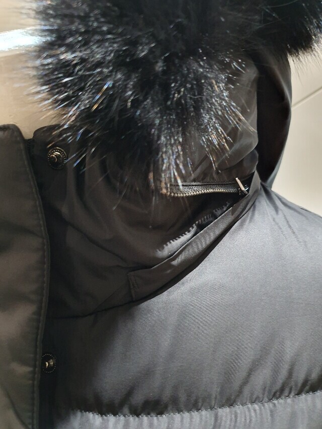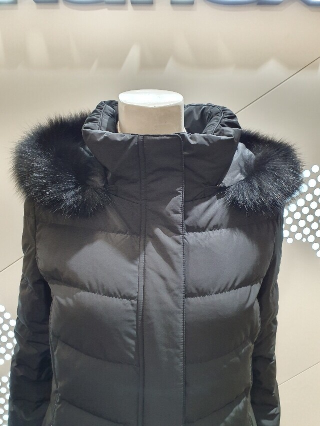 후드 탈부착 가능한 폭스 트리밍 구스 패딩