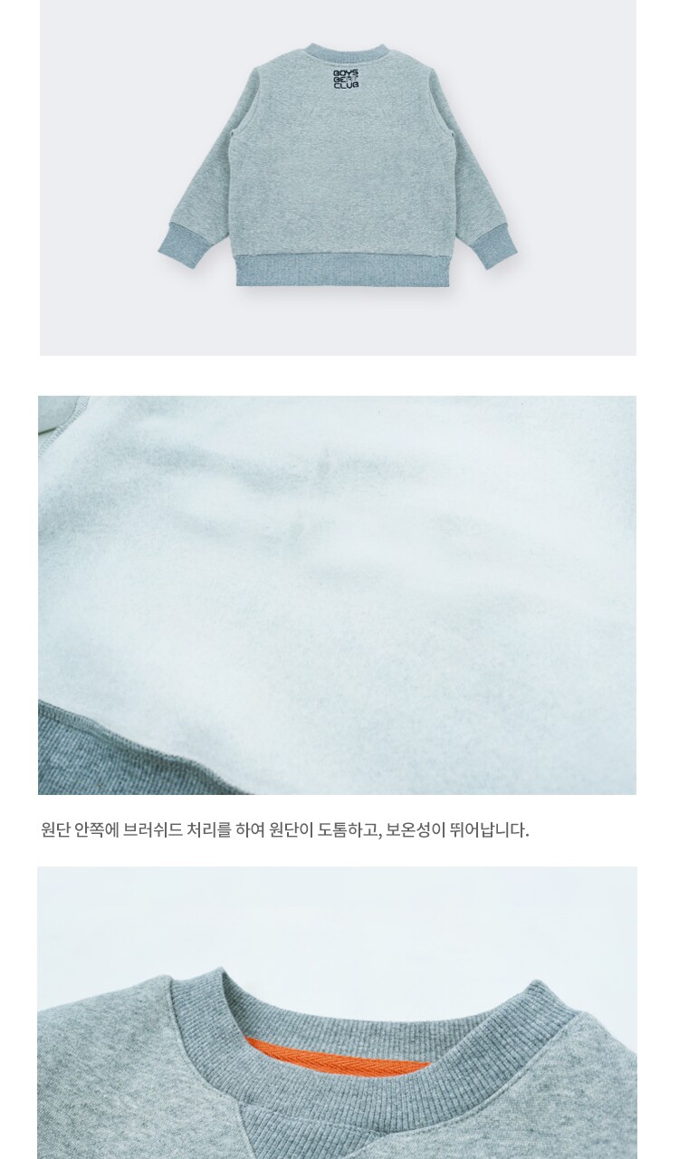 아동티 MTM 면 100% 스웨트 셔츠 달리 기모 맨투맨 멜란지그레이