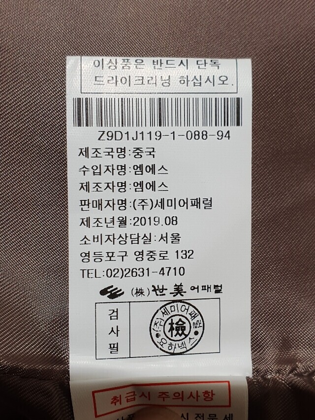 | 6. 세탁방법 및 취급시 주의사항 | 상품상세참조 |