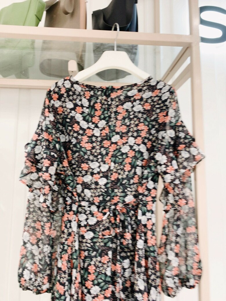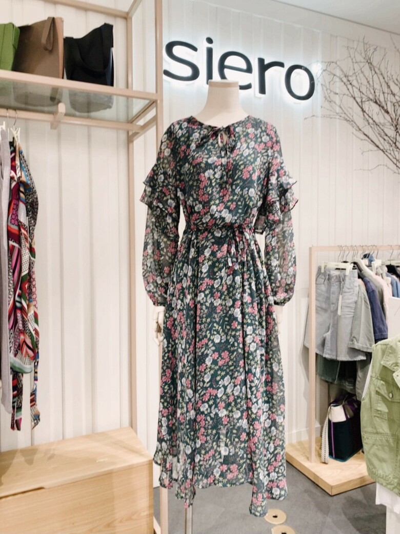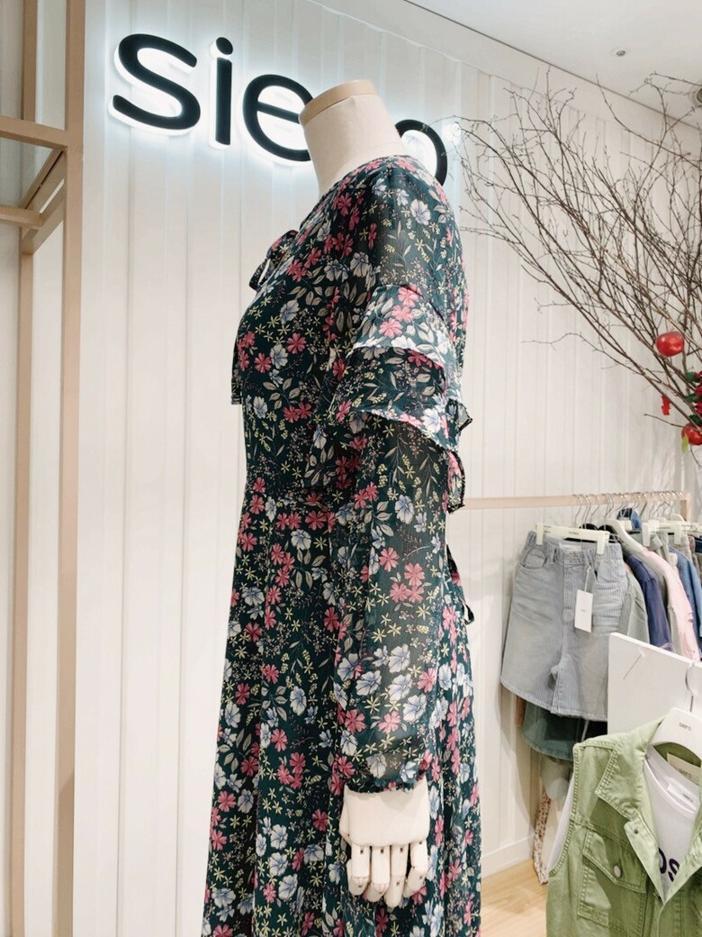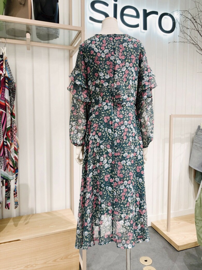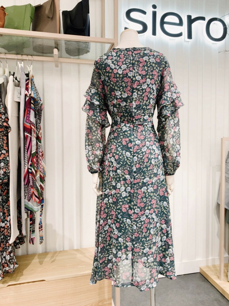 시에로 프린트 러플소매 디테일 원피스 SE3OPF266