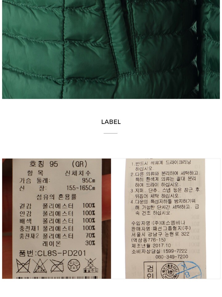 1. 제품 소재 (섬유의 조성 또는 혼용률을 백분율로 표시, 기능성인 경우 성적서 또는 허가서) 겉감-폴리에스터100%안감-폴리에스터100%배색-폴리에스터100%충전재1-폴리에스터100%충전재2-폴리에스터70%레이온30%