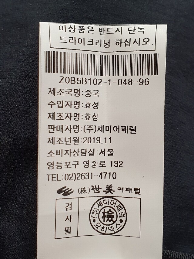 | 6. 세탁방법 및 취급시 주의사항 | 상품상세참조 |