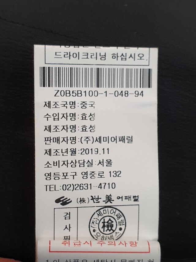 | 6. 세탁방법 및 취급시 주의사항 | 상품상세참조 |