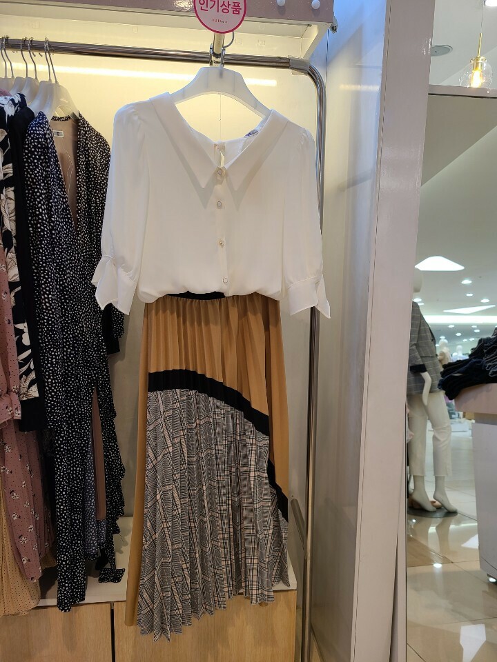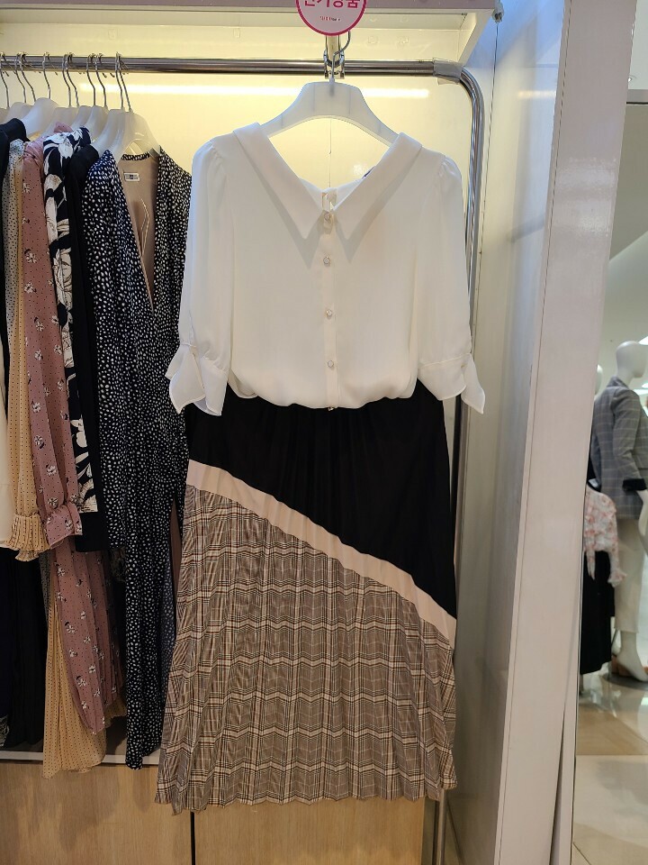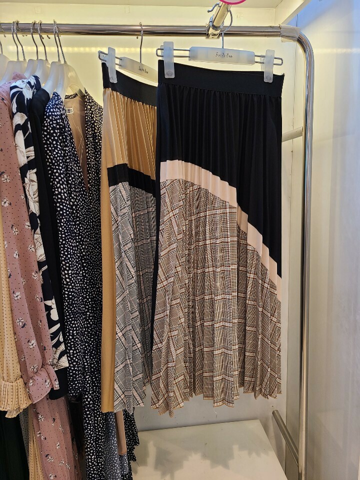 체크무늬배색 플리츠 주름이 차분한 이미지를 연출할 수 있어요!