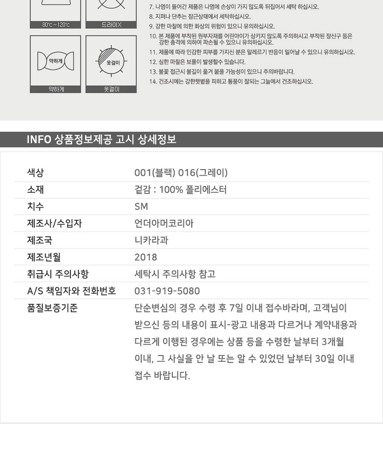 6. 세탁방법 및 취급시 주의사항 | 상세페이지 참조 |