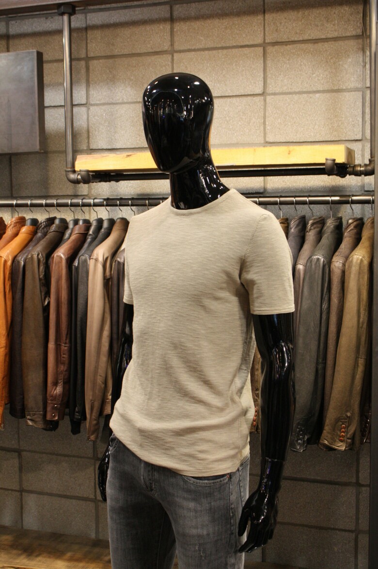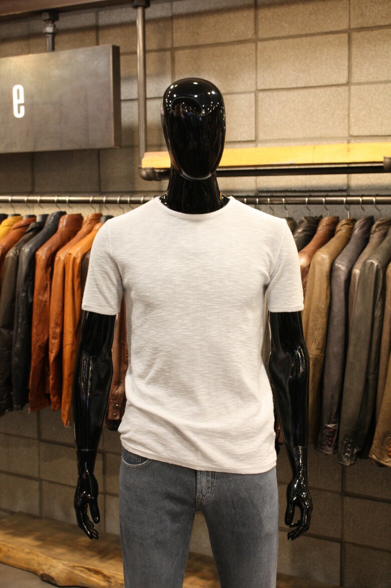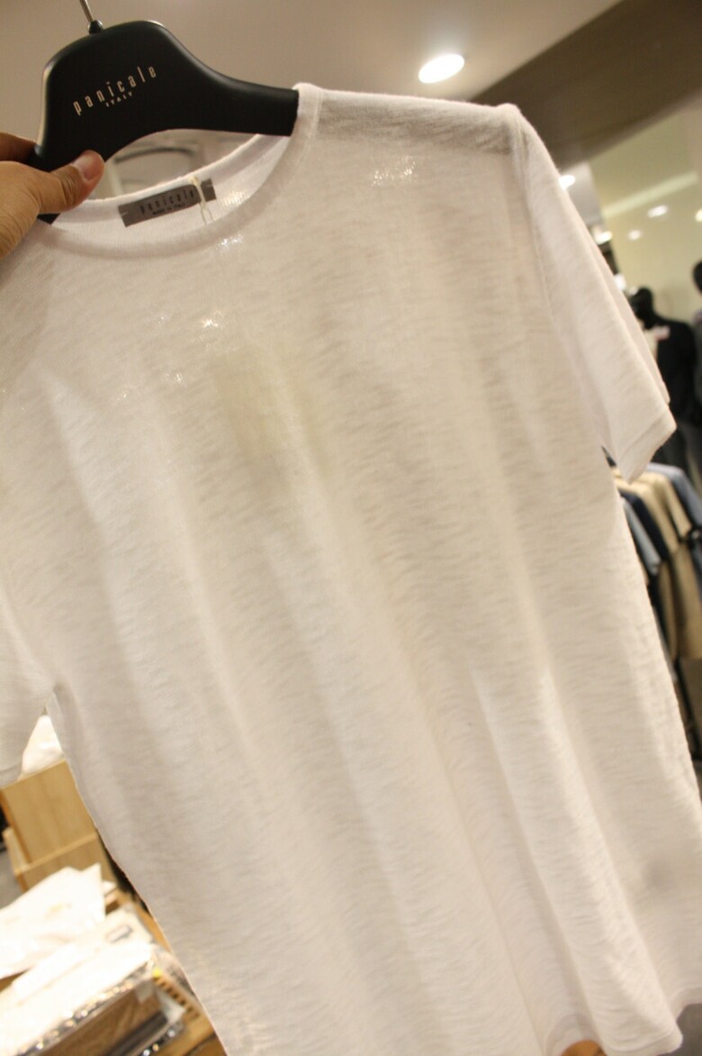 세련된 니트조직감으로 한여름까지 시원하게 입을수 있는 이태리직수입 라운드넥면니트티입니다