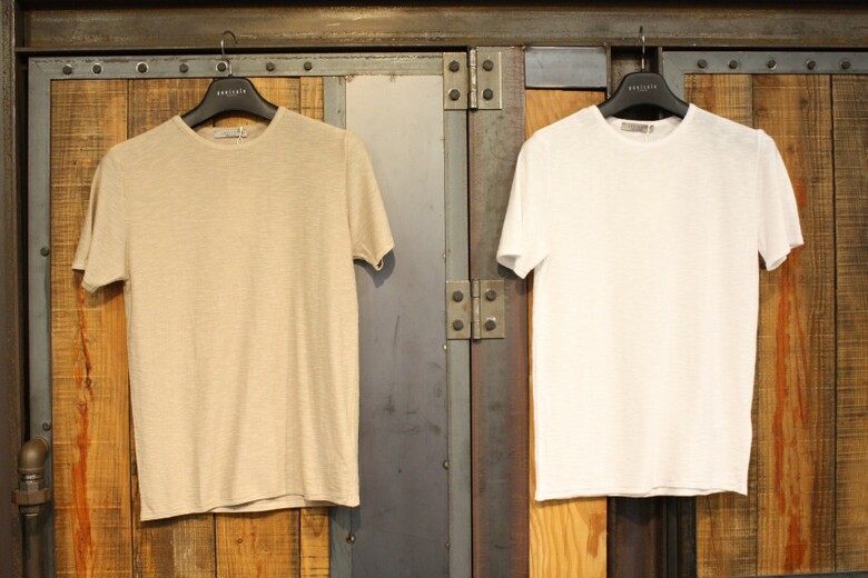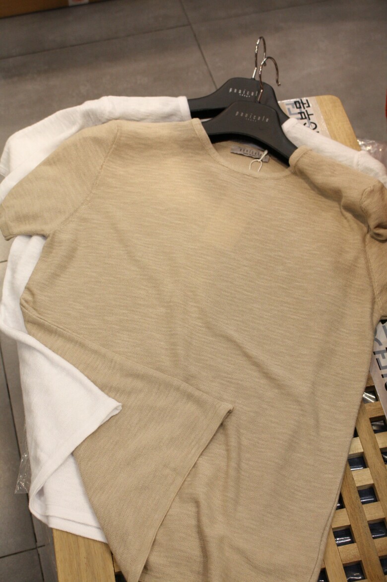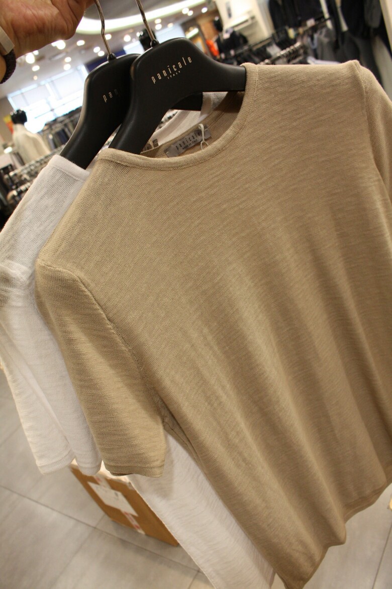 이태리에서 직수입된 부드러운 순면원단으로 착용감이 좋은 라운드넥반팔 면니트티 두가지컬러입니다
