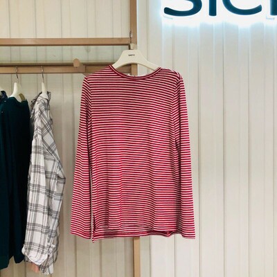 단정하고 깔끔하면서 캐주얼하게 입기좋은 기본핏 스트라이프 티셔츠입니다.