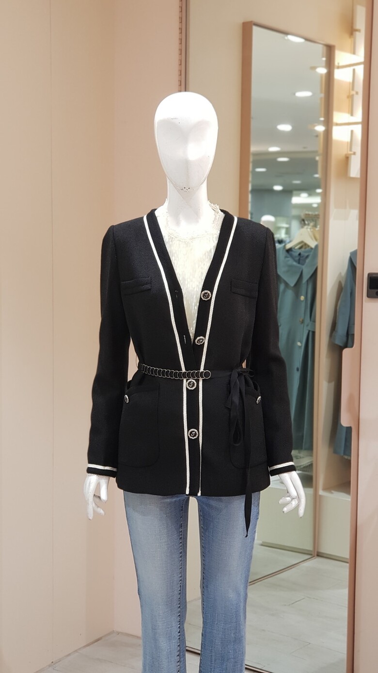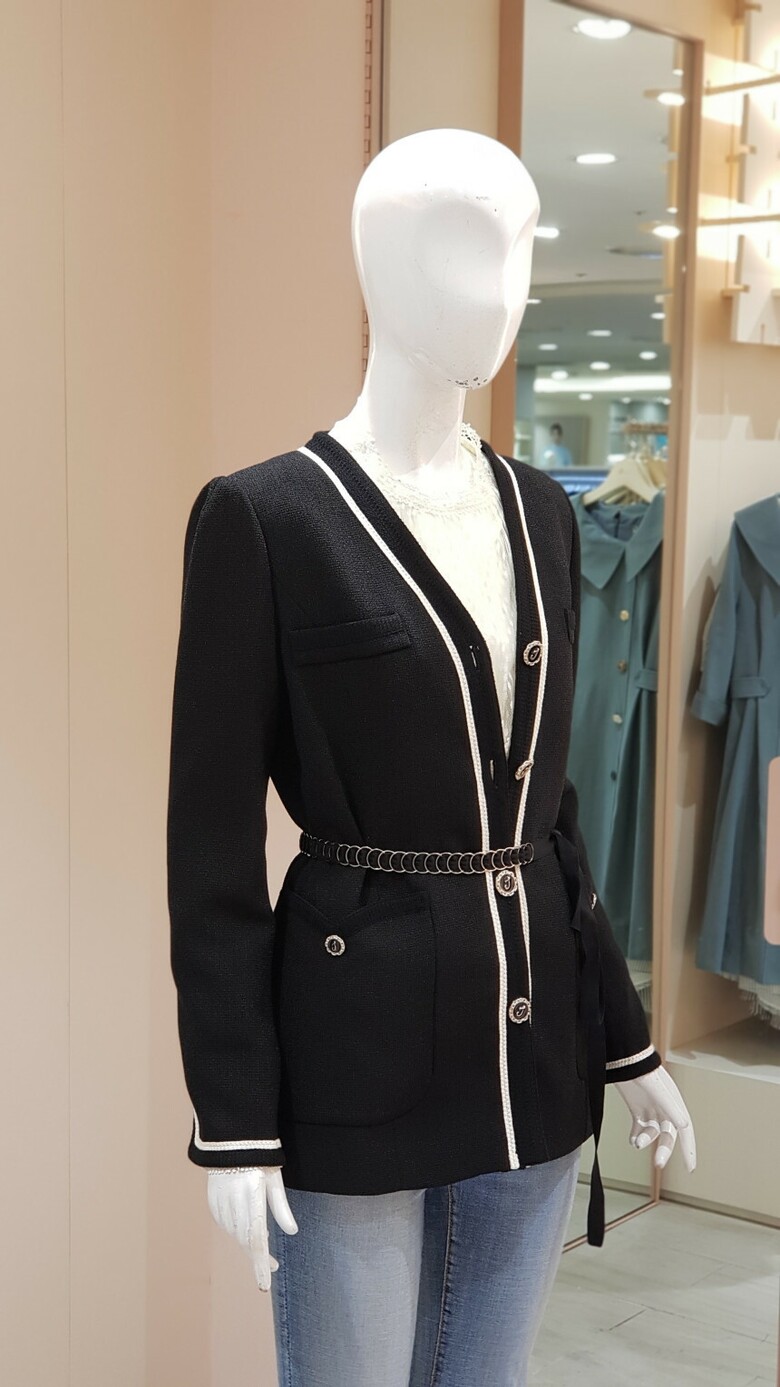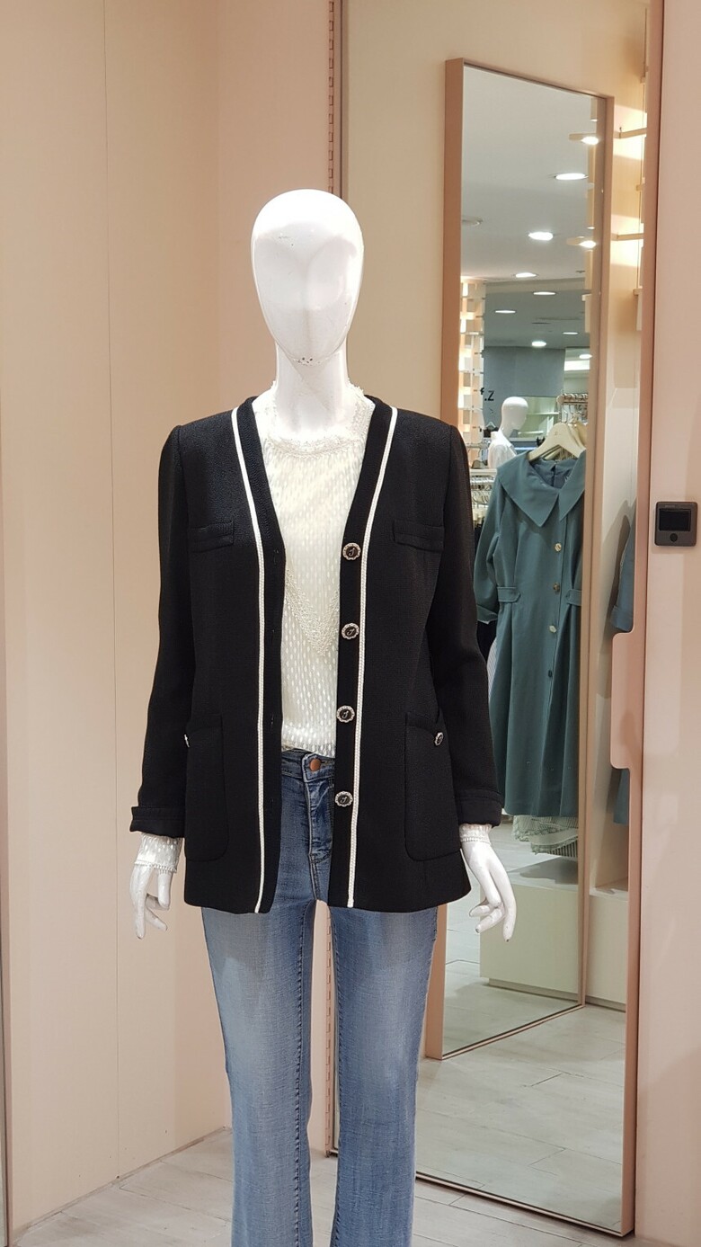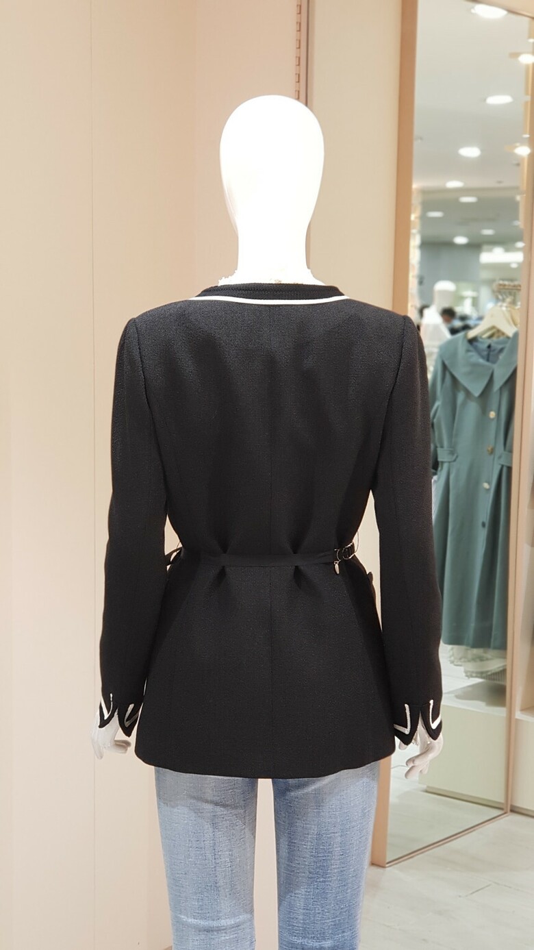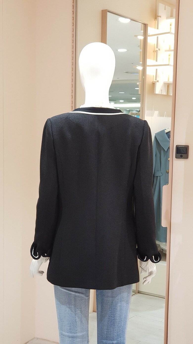 배색 디테일의 브레이드 라인으로 실루엣을 깔끔하게 잡아주는 자켓입니다.