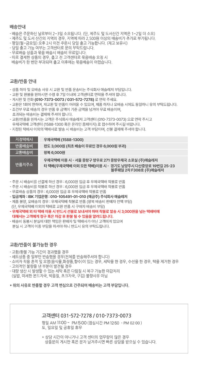 상품불량에 의한 반품, A/S, 품질보증 및 피해보상 등에 관한 사항은 소비자 분쟁해결기준(공정거래위원회 고시) 구매자가 미성년자인 경우에는 상품 구입시 법정대리인이 동의하지 아니하면 미성년자 본인 또는 법정대리인이 구매취소 할 수 있습니다. |