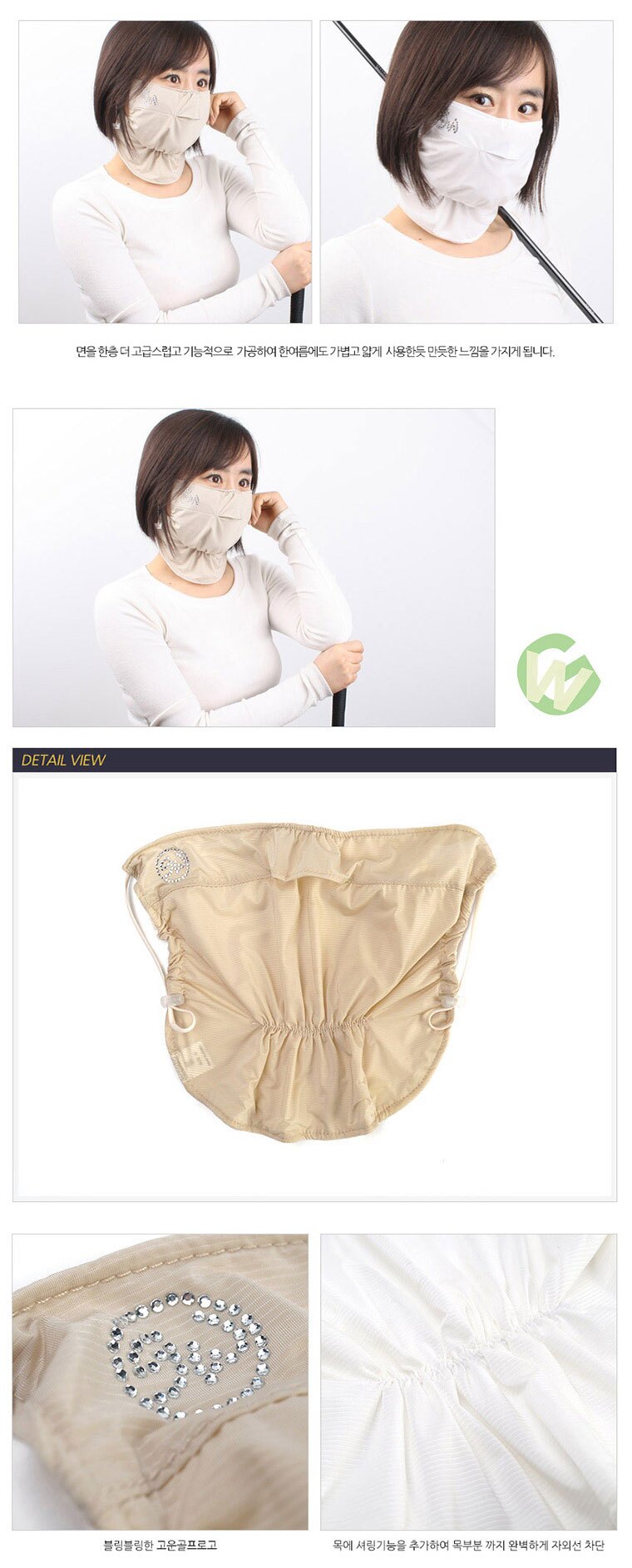 투딘 고운 H2 여성용 마스크 자외선 차단 골프마스크