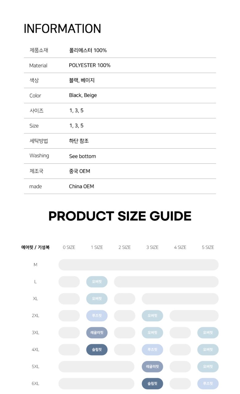 • 처음 배송된 상품상태와 다를 경우(세탁/착용 후 외출하신 경우) 반품이 불가합니다.