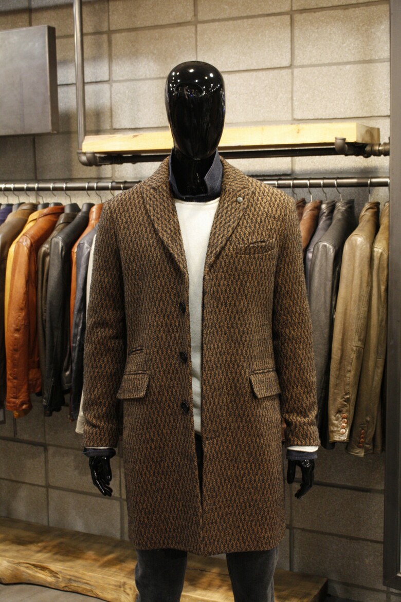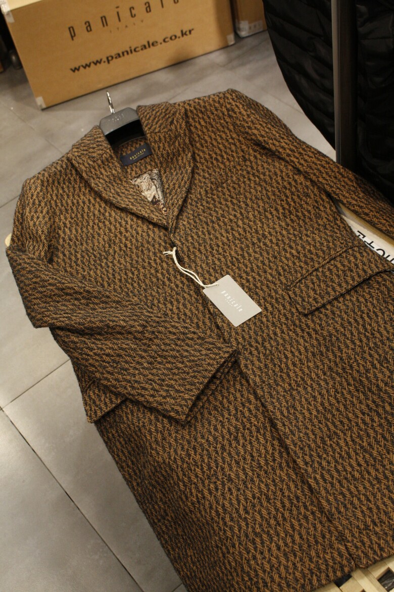 세련된 컬러와 편안한 실루엣으로 가을겨울 고급스럽게 코디할수 있는 이태리직수입 트위드싱글코트입니다