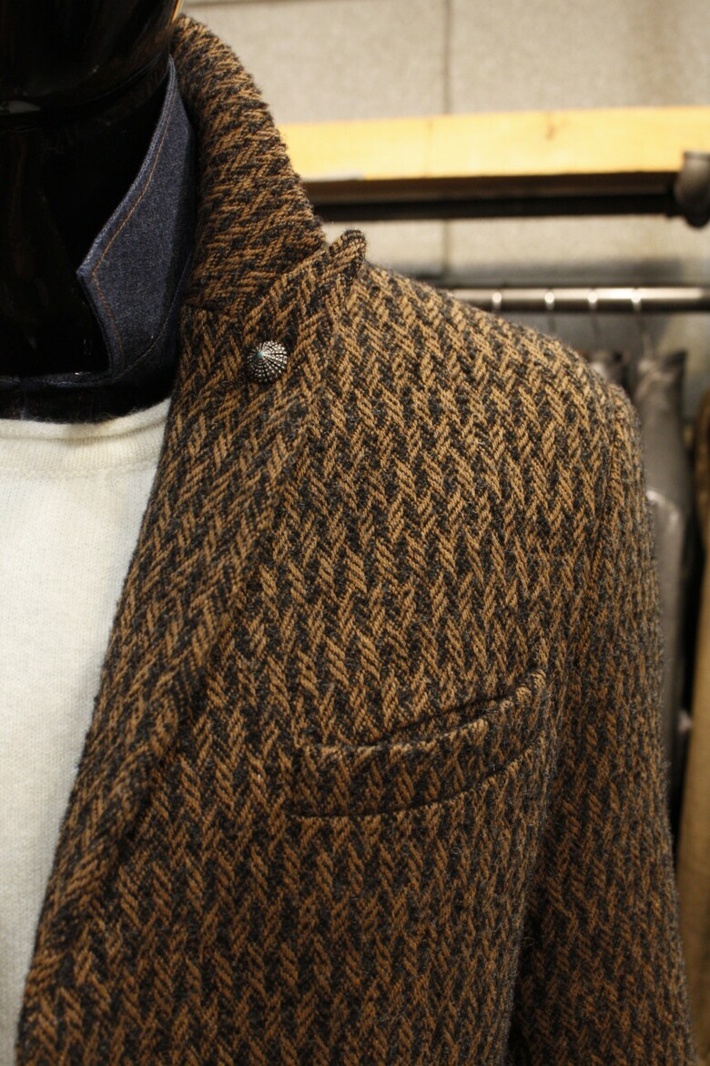 세련된 컬러와 고급스러운 조직감의 이태리 트위드싱글코트입니다