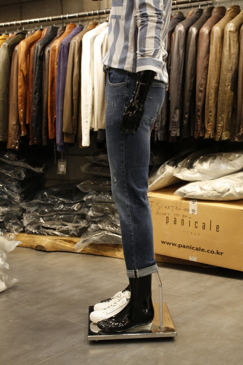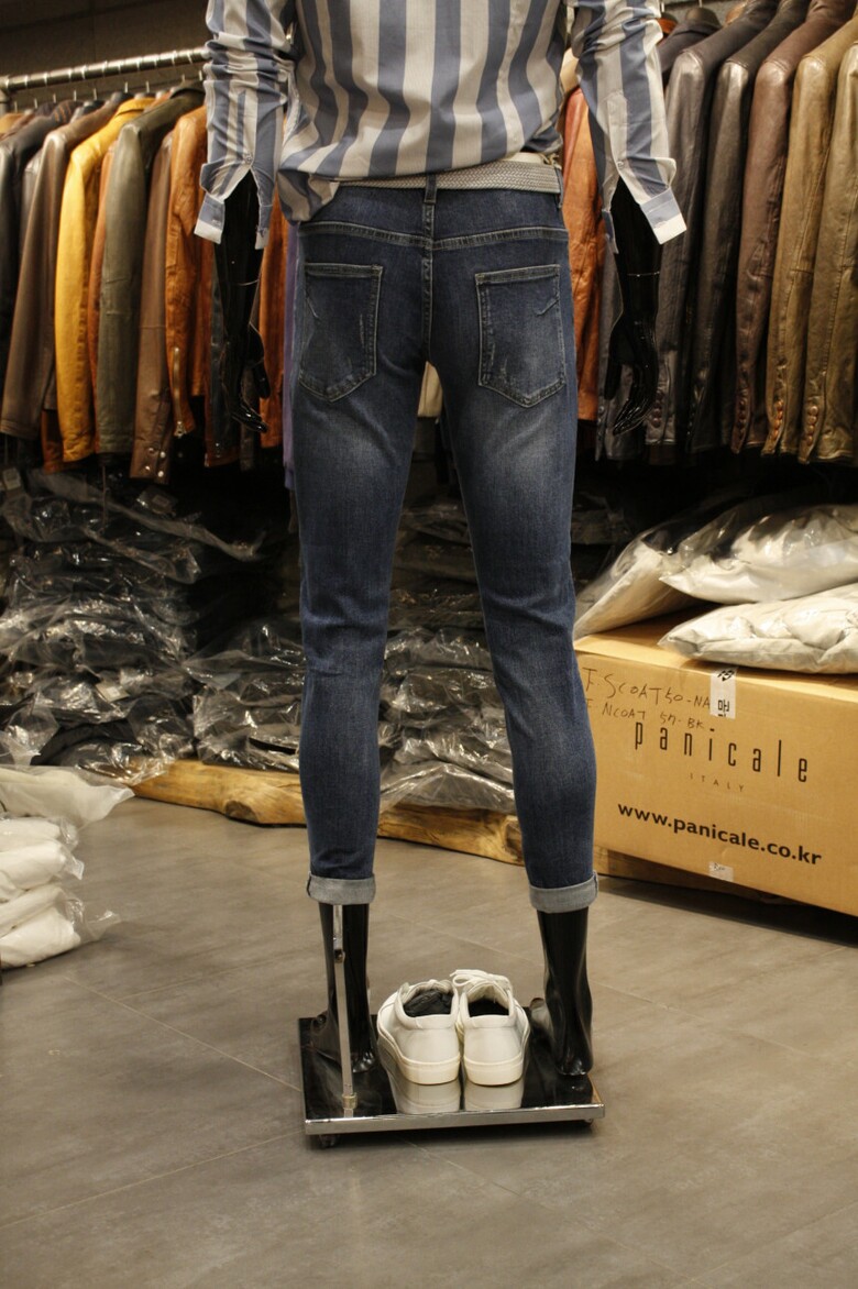 과격한 데미지없이 워싱으로 은은하게 빈티지한느낌을 살린 슬림스판청바지입니다