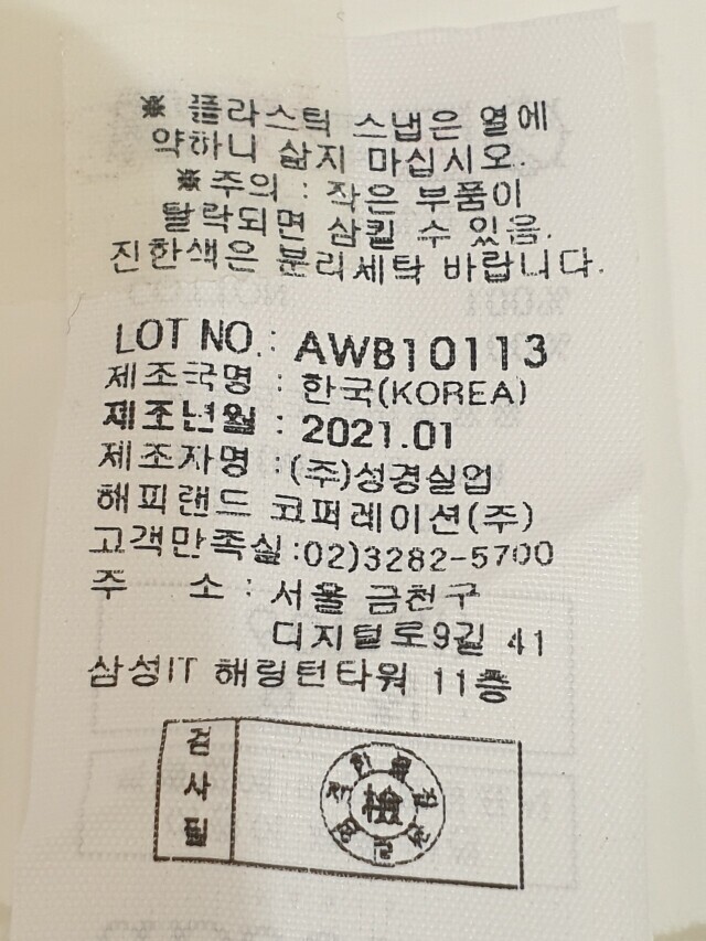 상품불량에 의한 반품, A/S, 품질보증 및 피해보상 등에 관한 사항은 소비자 분쟁해결기준(공정거래위원회 고시) 구매자가 미성년자인 경우에는 상품 구입시 법정대리인이 동의하지 아니하면 미성년자 본인 또는 법정대리인이 구매취소 할 수 있습니다. |