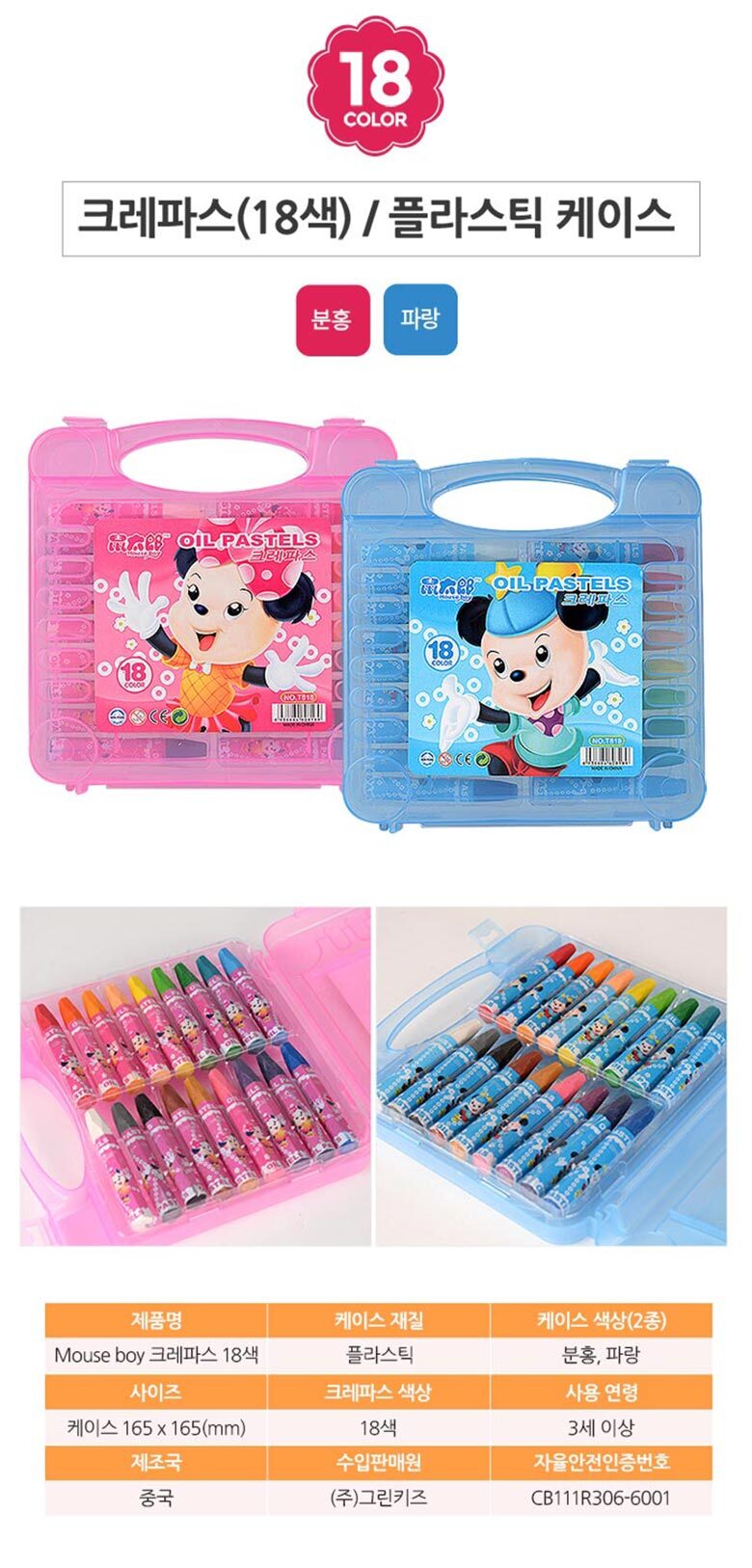 블루마토 크레파스 플라스틱케이스2종 - 12색,18색,24색 택1