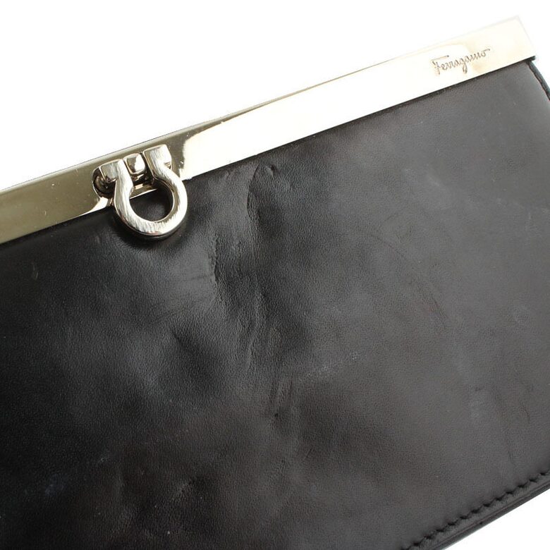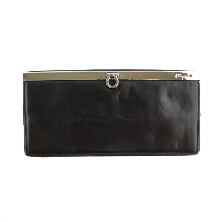 [중고명품] 페라가모 은장 간치니 블랙 레더 장지갑