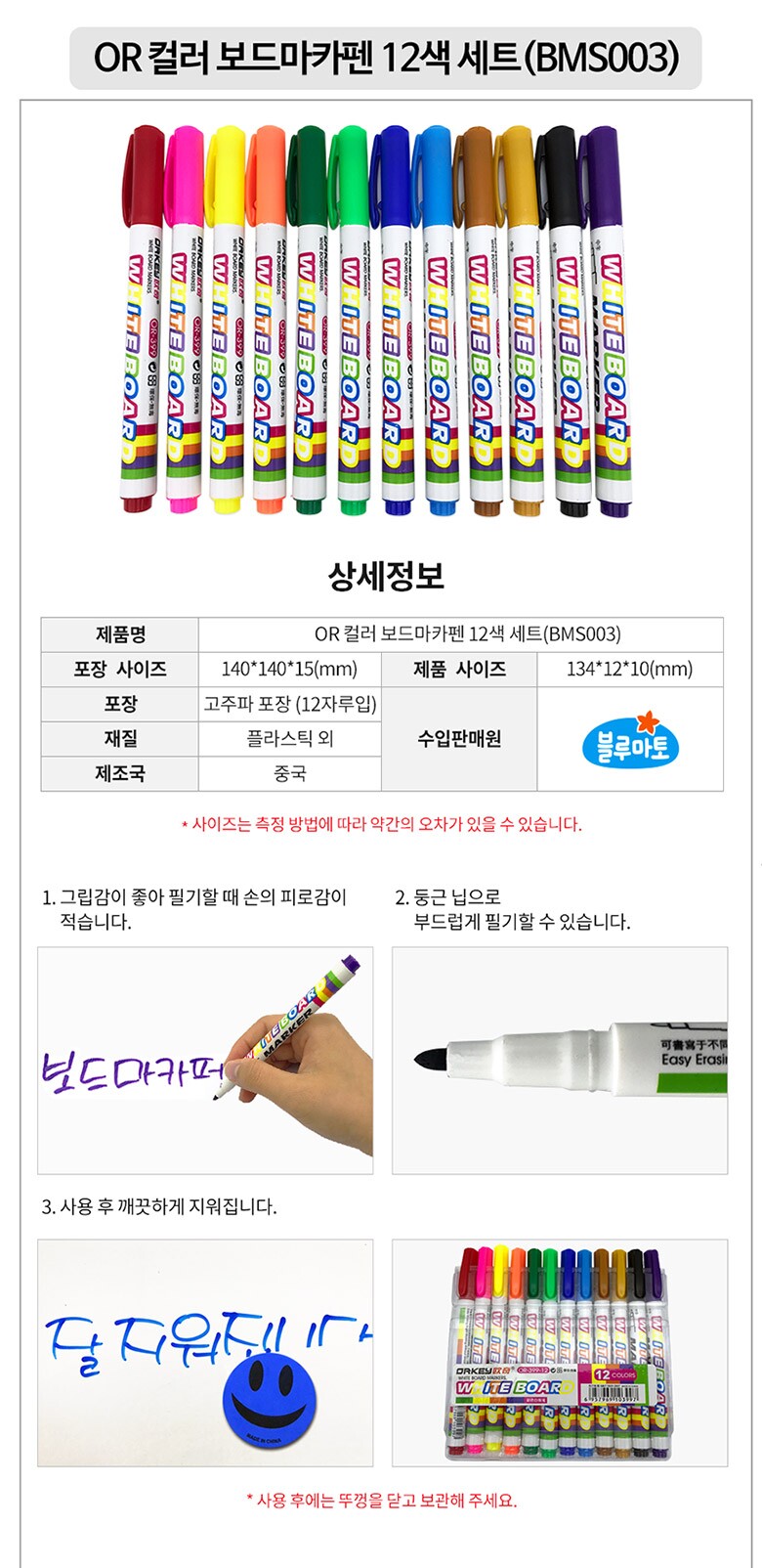 [블루마토] OR 컬러 보드마카펜 12색 세트(BMS003)