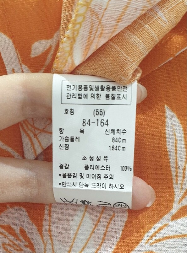 | 1. 제품 소재 (섬유의 조성 또는 혼용률을 백분율로 표시, 기능성인 경우 성적서 또는 허가서) | 폴리에스테르 100%, 패브릭 |
