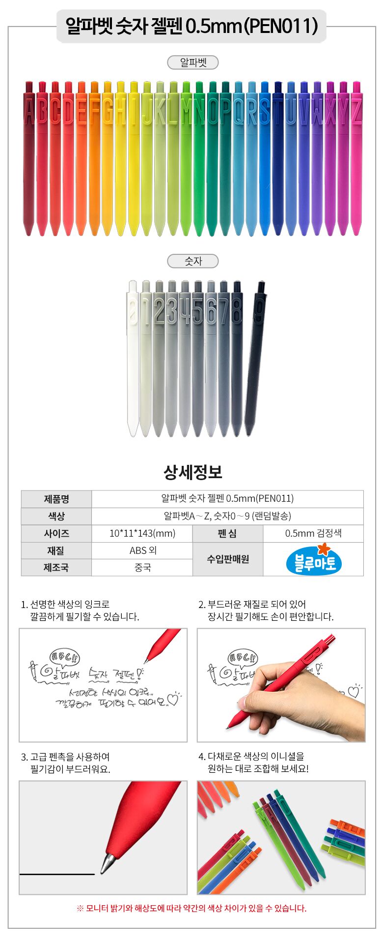 [블루마토] 알파벳 숫자 젤펜 0.5mm(PEN011)