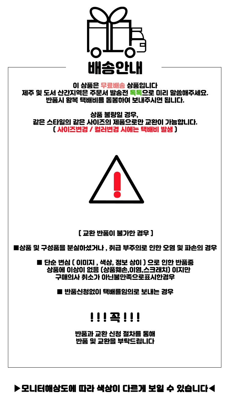 반품 유의사항