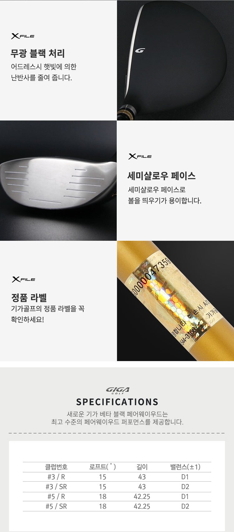 기가골프 X-FILE BETA BLACK 블랙 페어웨이우드