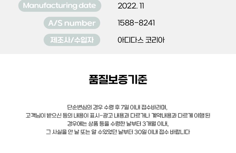 9. A/S 책임자와 전화번호 | 아디다스 코리아 / 1588-8241 |