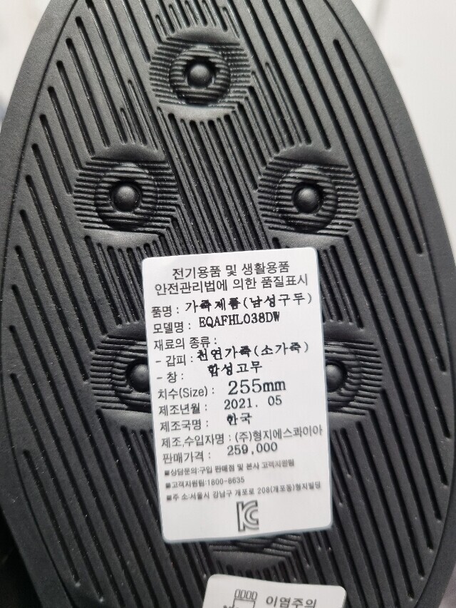 1. 제품 소재 (운동화인 경우에는 겉감, 안감을 구분하여 표시) 소가죽