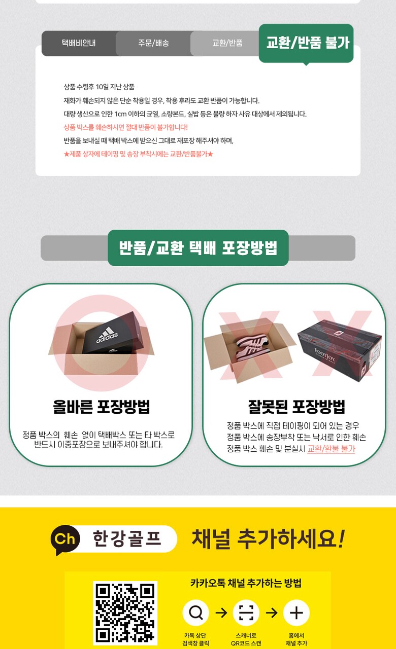 • 브랜드 박스로 포장된 상품은 해당 박스에 직접 테이핑, 송장을 부착한 경우 반품이 불가합니다.