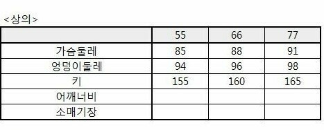 소고(SOGO) 트리아나 의류 사이즈 기준표