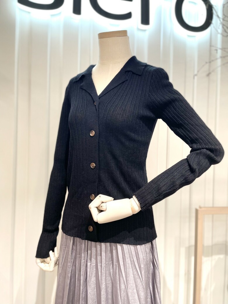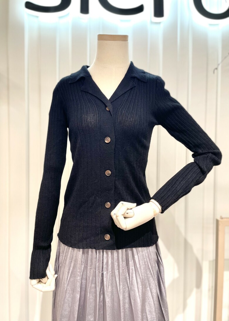[시에로] 슬림핏 오픈카라 골지 니트가디건 SH1KTF421