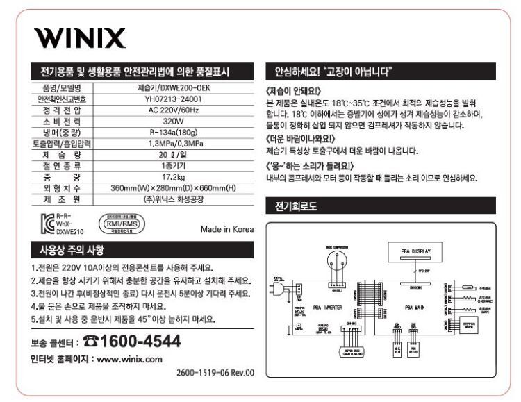 | 11. A/S책임자와전화번호 | 위닉스 고객만족센터 1544-5081 |