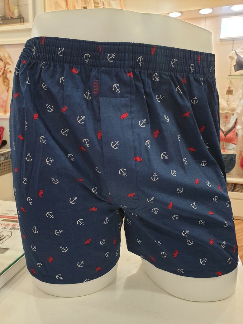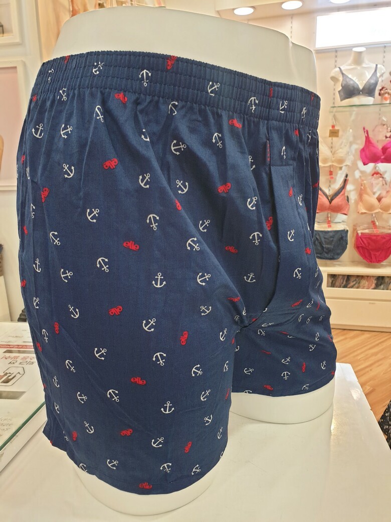 네이비 컬러에 엘르로고와 마린 무늬로 캐쥬얼한 느낌을 줍니다.