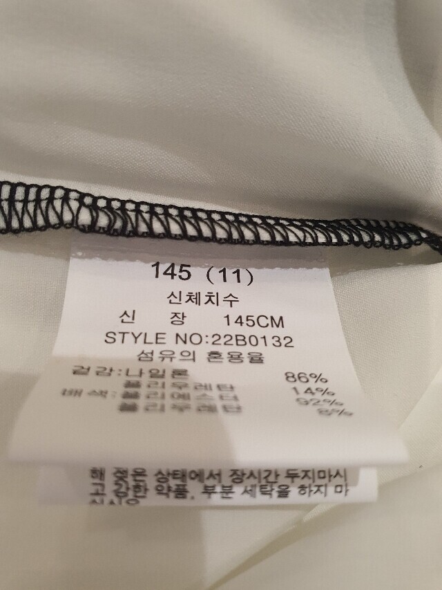 | 1. 제품 소재 (섬유의 조성 또는 혼용률을 백분율로 표시, 기능성인 경우 성적서 또는 허가서) | 나일론86 폴리우레탄14 |