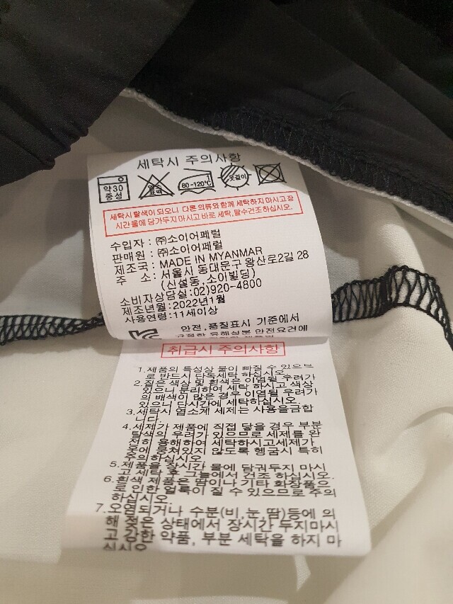 | 6. 세탁방법 및 취급시 주의사항 | 손세탁 |