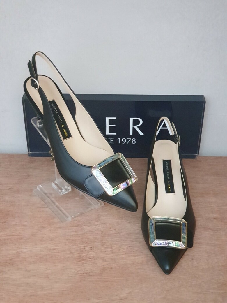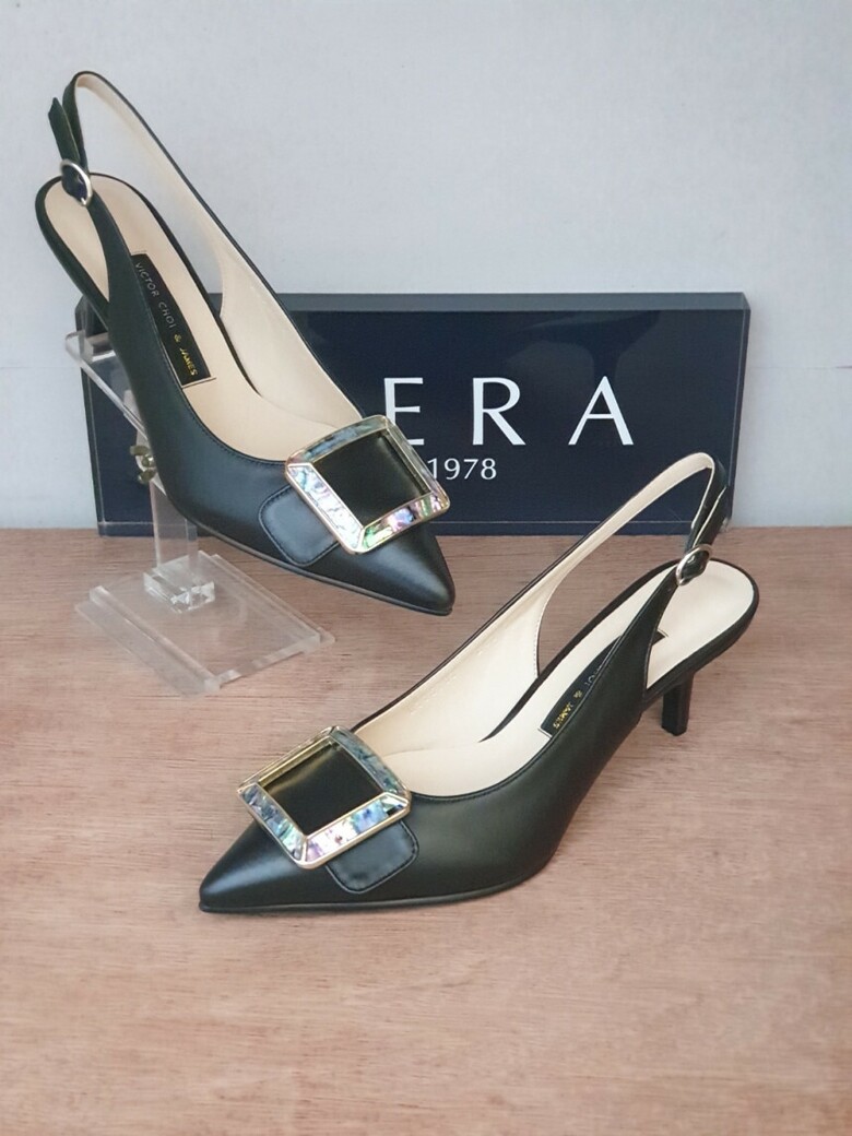 [세라] (2color) 마리오 VICTOR CHOI 양가죽 사각장식 힐 슬링백 (6cm) W22S302