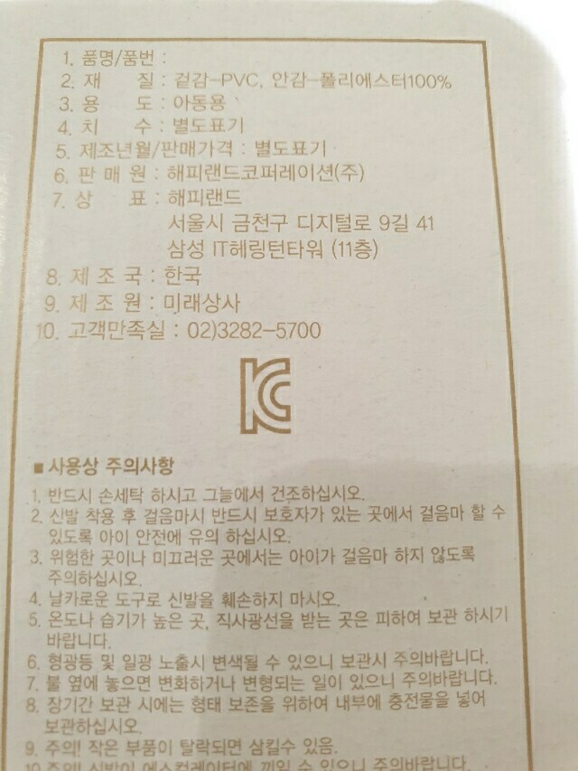 | 6. 취급시 주의사항 | 상품상세참조 |
