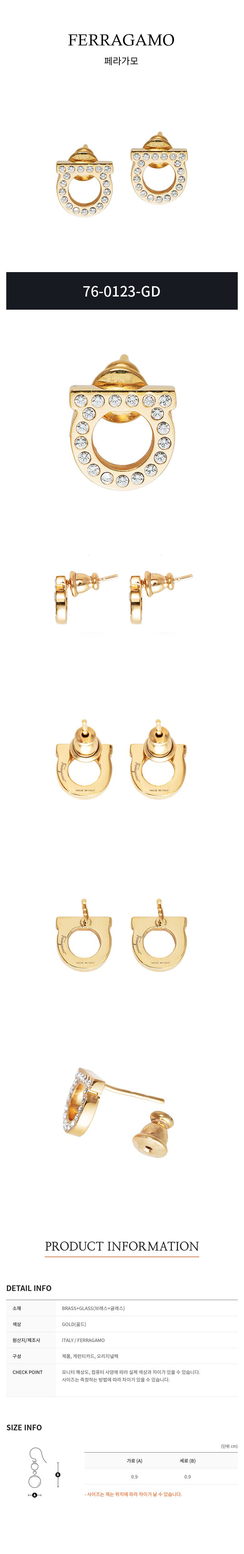 [명품] 페라가모 간치니 크리스탈 귀걸이 76 0123 GOLD 696576