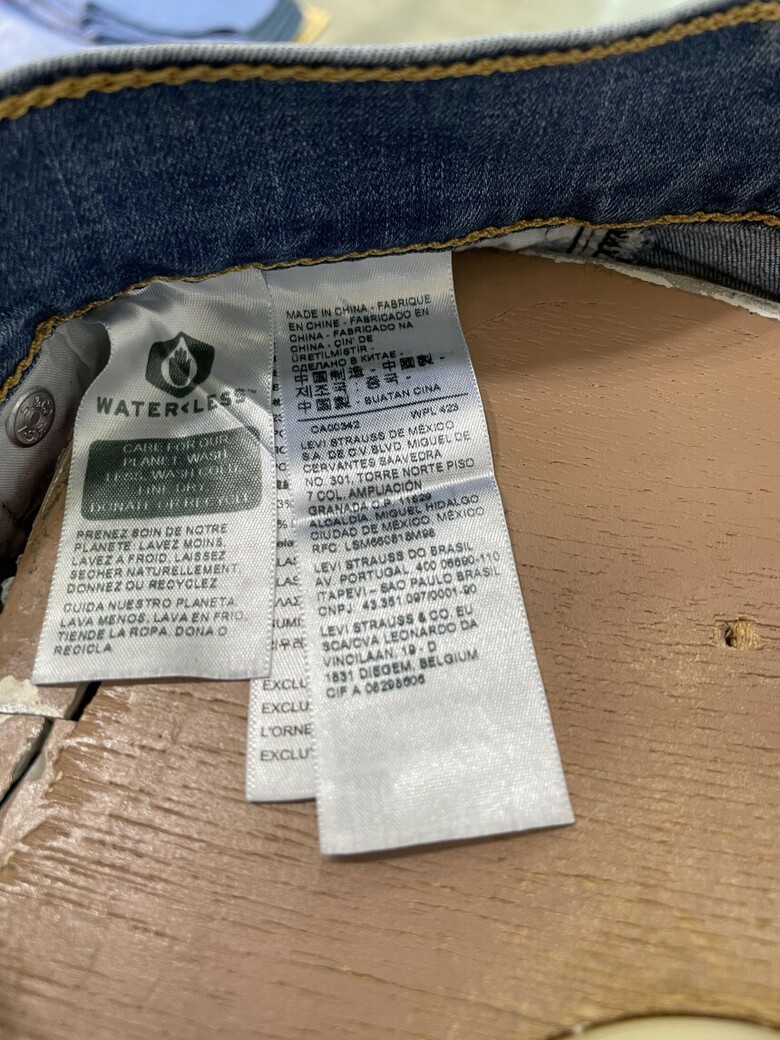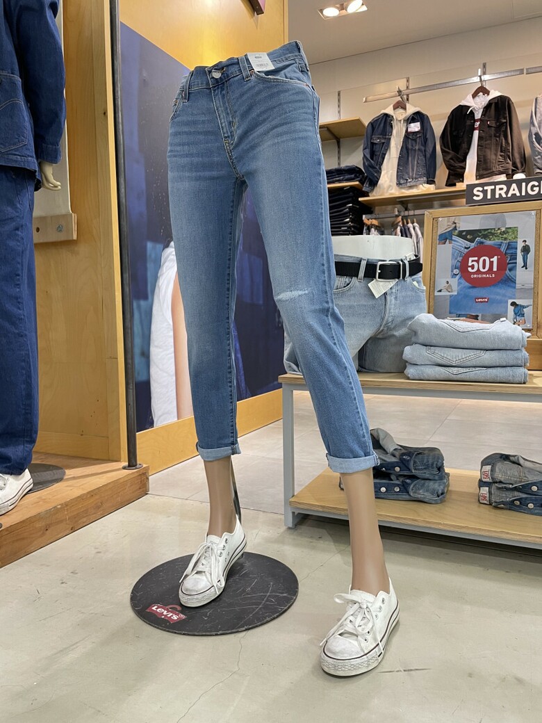 미디엄 블루 컬러로 허벅지 라인에 워싱이 들어가 있으며