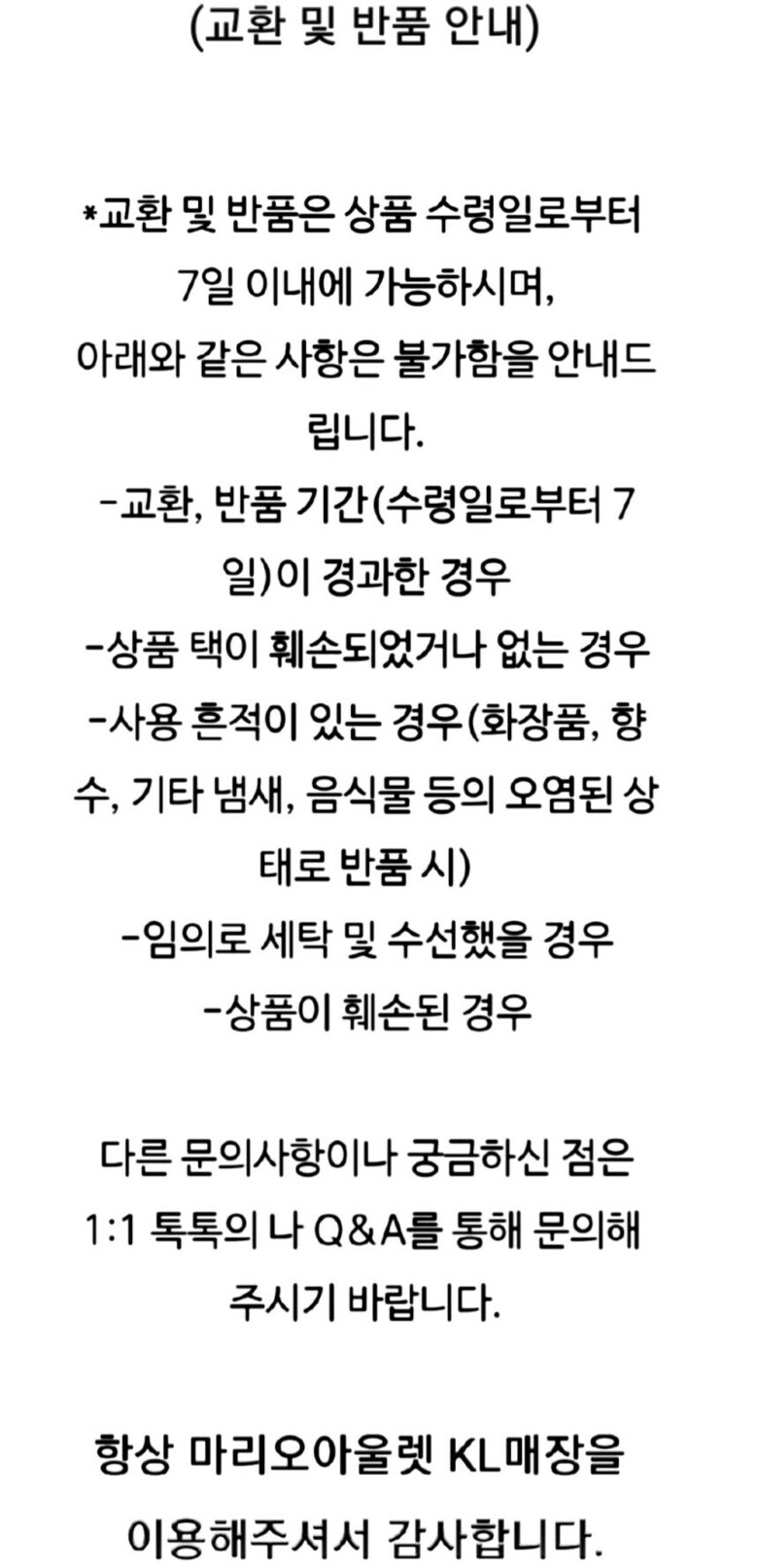 상품불량에 의한 반품, A/S, 품질보증 및 피해보상 등에 관한 사항은 소비자 분쟁해결기준(공정거래위원회 고시) 구매자가 미성년자인 경우에는 상품 구입시 법정대리인이 동의하지 아니하면 미성년자 본인 또는 법정대리인이 구매취소 할 수 있습니다. |