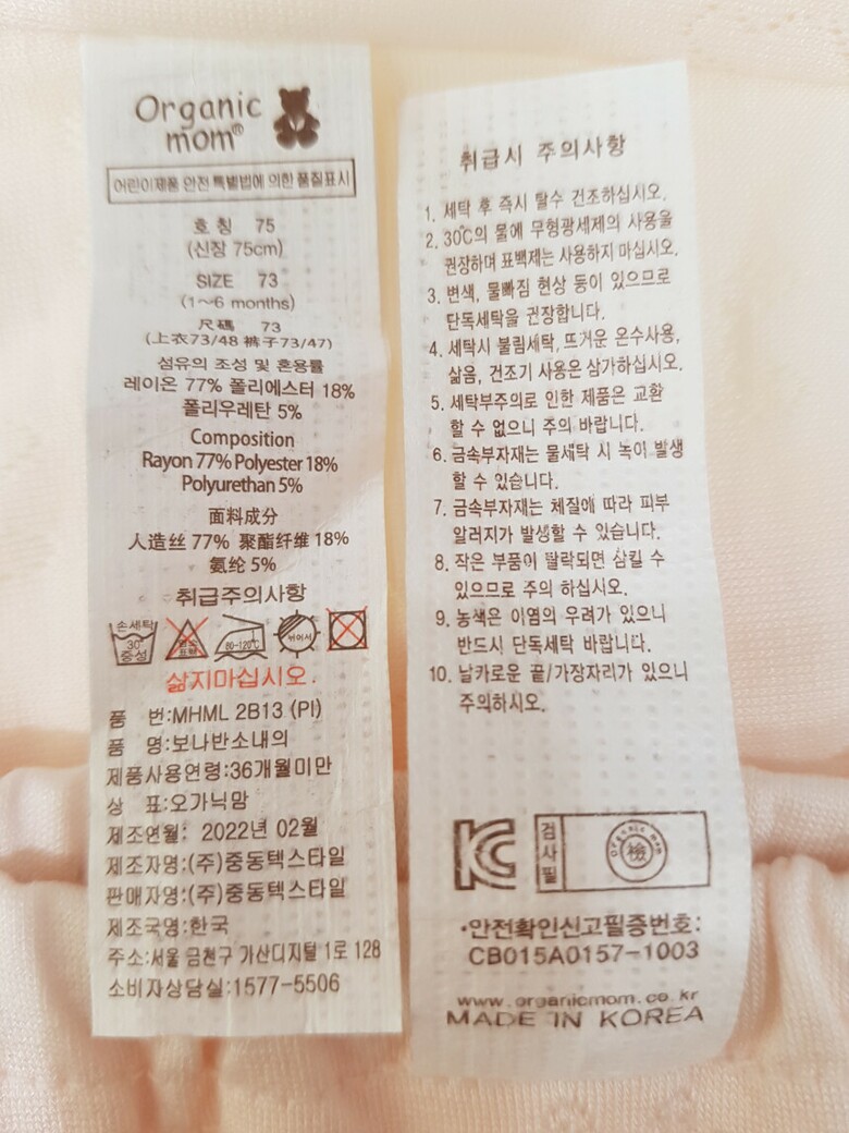 | 7. 세탁방법 및 취급시 주의사항 | 상세페이지 참조 |