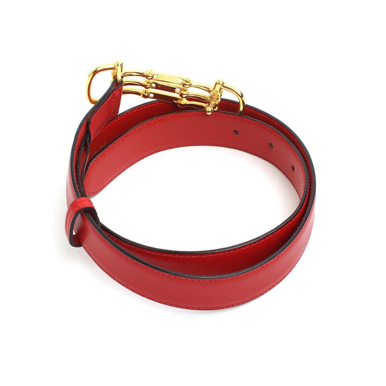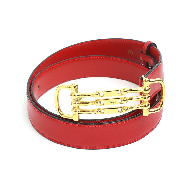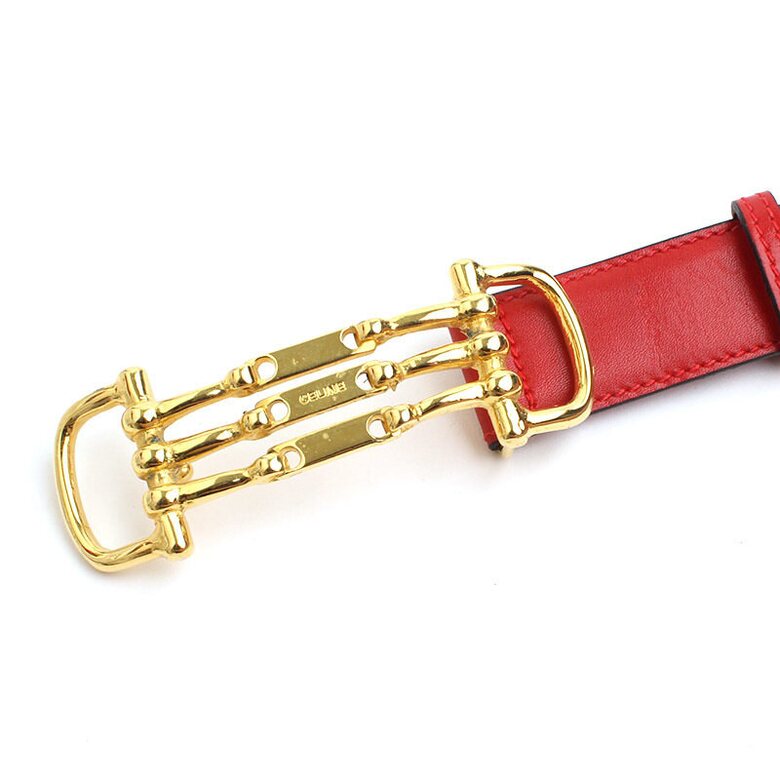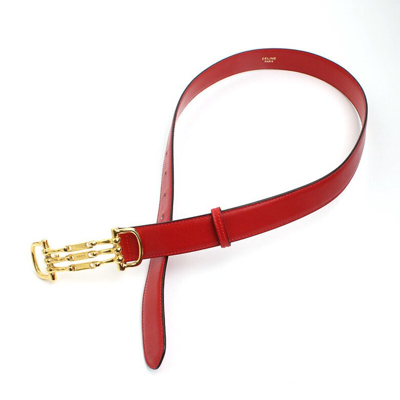 [중고명품] 셀린느 트리플 금장버클 레드 벨트
