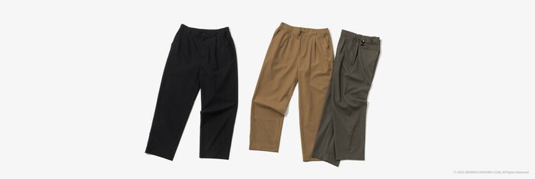 뉴에라 블랙라벨 이지케어 A턱 팬츠 컬렉션을 소개합니다. LANATEC®과 SOLOTEX® 혼방 원단으로 울과 비슷한 느낌을 내면서도 신축성을 지녀 편안한 착용감을 제공합니다. 고급스러운 느낌을 주는 멜란지 느낌의 소재 외에도 코인 포켓과 모자를 걸 수 있는 트라이앵글 메탈 훅 등 디테일도 놓치지 않았습니다. 올리브 그린, 카멜, 블랙 베이직한 세 가지 컬러로 출시된 블랙라벨 이지케어 팬츠를 지금 만나보세요.ⓝ